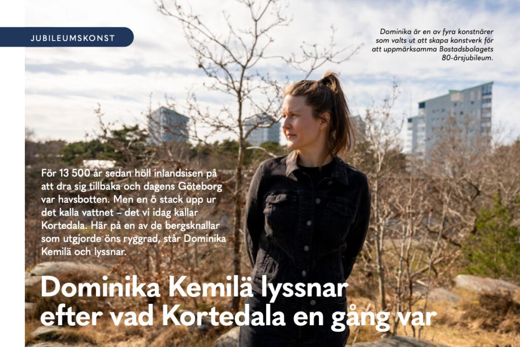 ”Dominika är en av fyra konstnärer som valts ut att skapa konstverk för att uppmärksamma Bostadsbolagets 80-årsjubileum.”