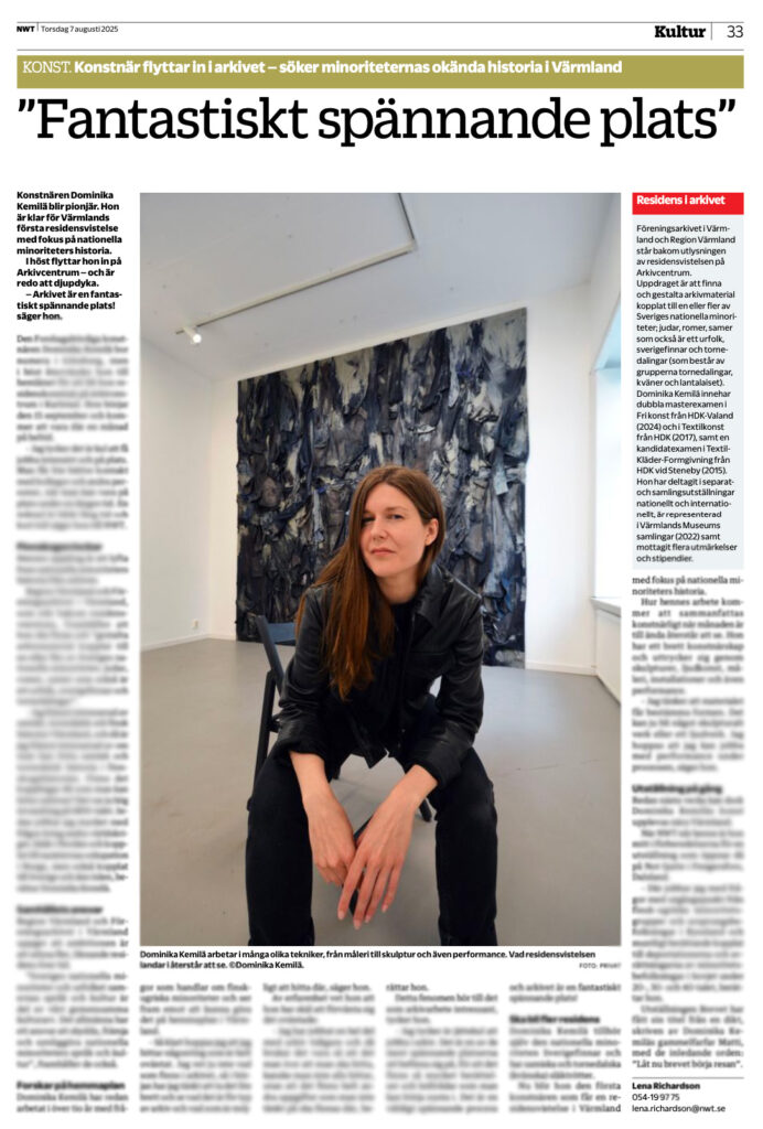 ”Konstnären Dominika Kemilä blir pionjär. Hon är klar för Värmlands första residensvistelse med fokus på nationella minoriteters historia.