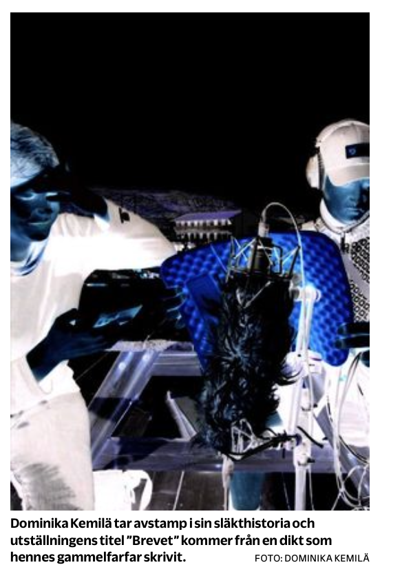 ”Dominika Kemilä tar avstamp i sin släkthistoria och utställningens titel ”Brevet” kommer från en dikt som hennes gammelfarfar skrivit.”
